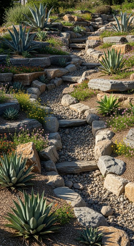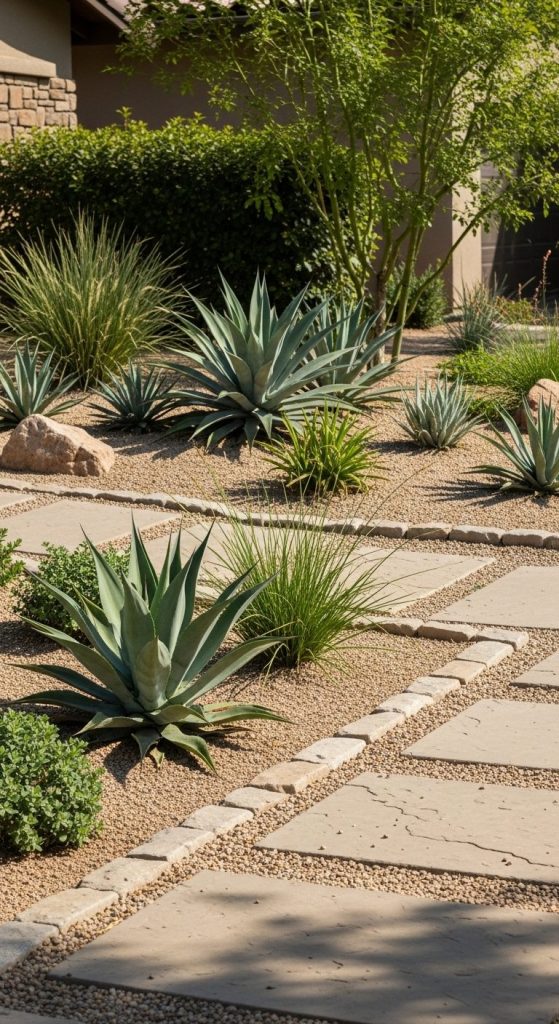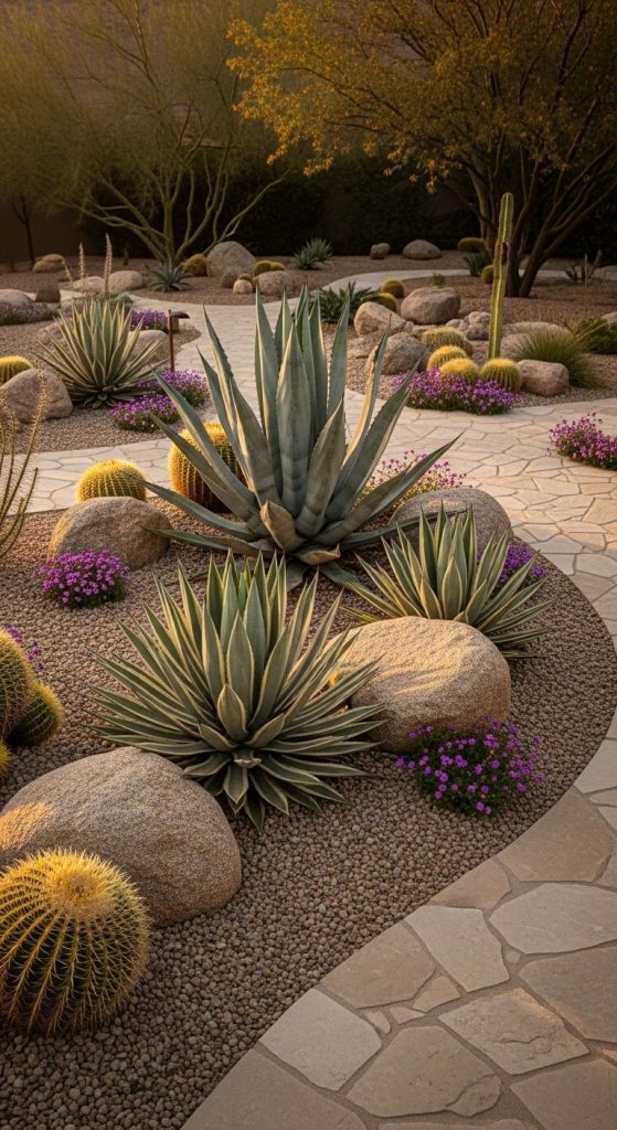 Takeaway: A rock garden is a win-win — less water, more texture, and agaves that pop like desert jewels.