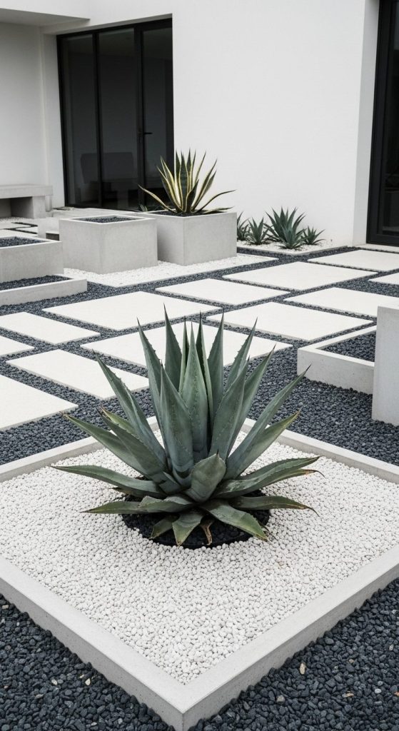 - Striking visual contrast between sharp agave forms and soft gravel or sand.