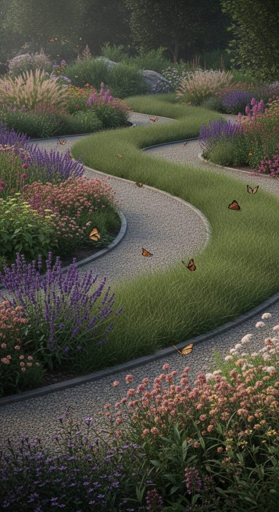 Butterflies move gracefully — your garden layout should too. Let paths curve naturally around flower clusters for a tranquil, inviting vibe.