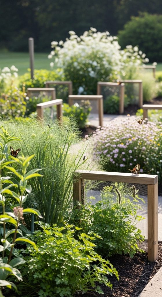 Use shrubs, hedges, or lattice screens to shield your garden gently — your butterflies (and flowers) will thank you.