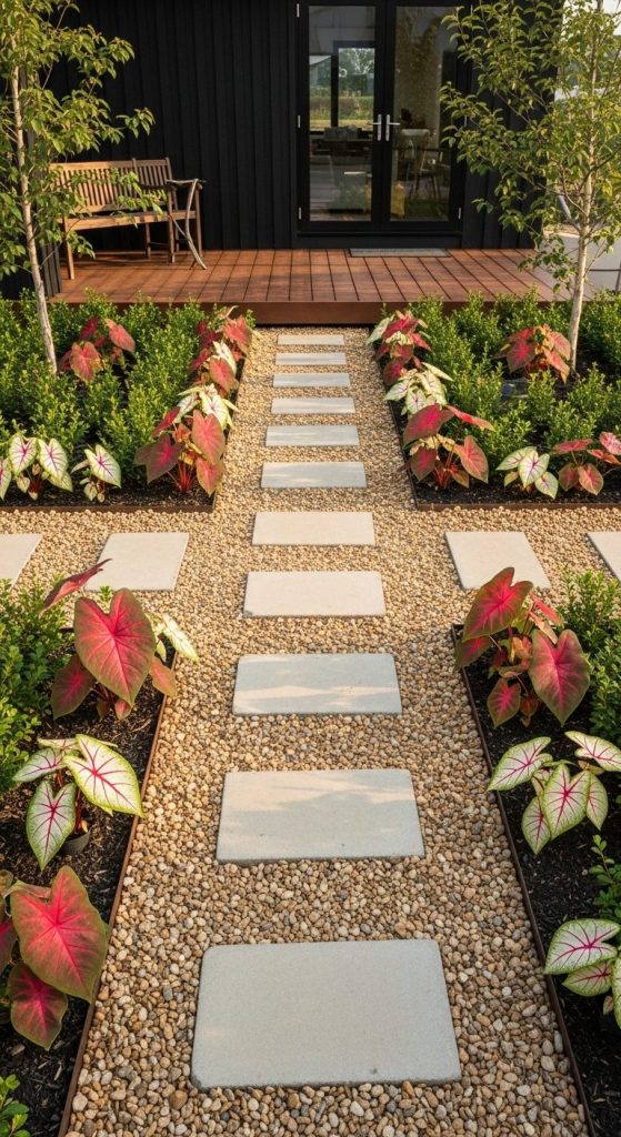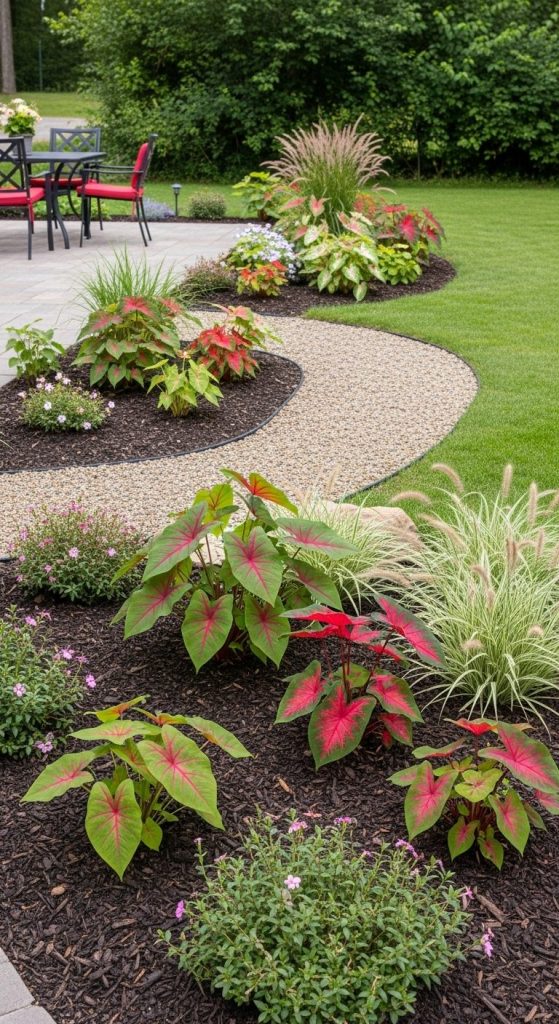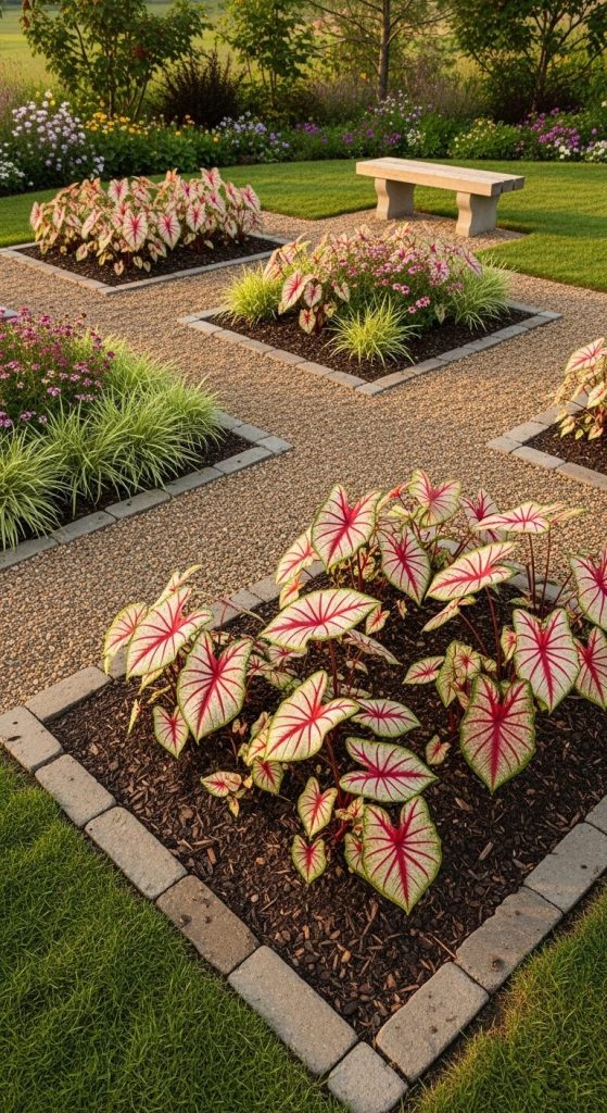 Takeaway: Caladium borders can turn a simple garden edge into a dynamic, layered display.