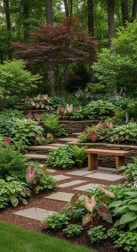 4. Layered Woodland Caladium Garden