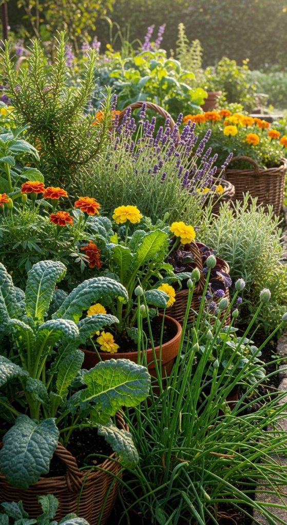 2. Mix Flowers, Herbs, and Vegetables Together