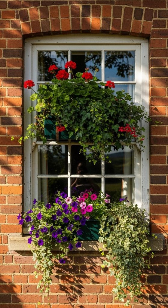 Window boxes are small but mighty. Stuff them with geraniums, ivy, and petunias that cascade down like waterfalls of color.