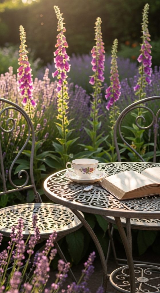Cottage gardens aren’t just for looking — they’re for living. Add a bench, bistro set, or swing surrounded by blooms.