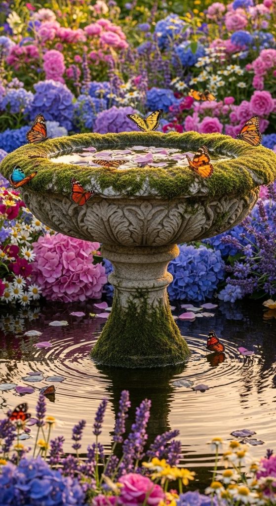 The gentle sound of trickling water makes any garden feel more alive. Even a small birdbath adds charm and invites wildlife.
