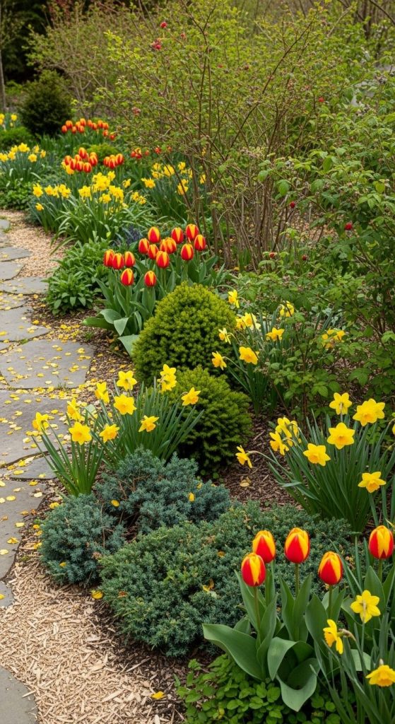 Cottage gardens don’t need to go dull in winter. Layer plants so something’s always happening — bulbs in spring, perennials in summer, berries in fall, and evergreens in winter.