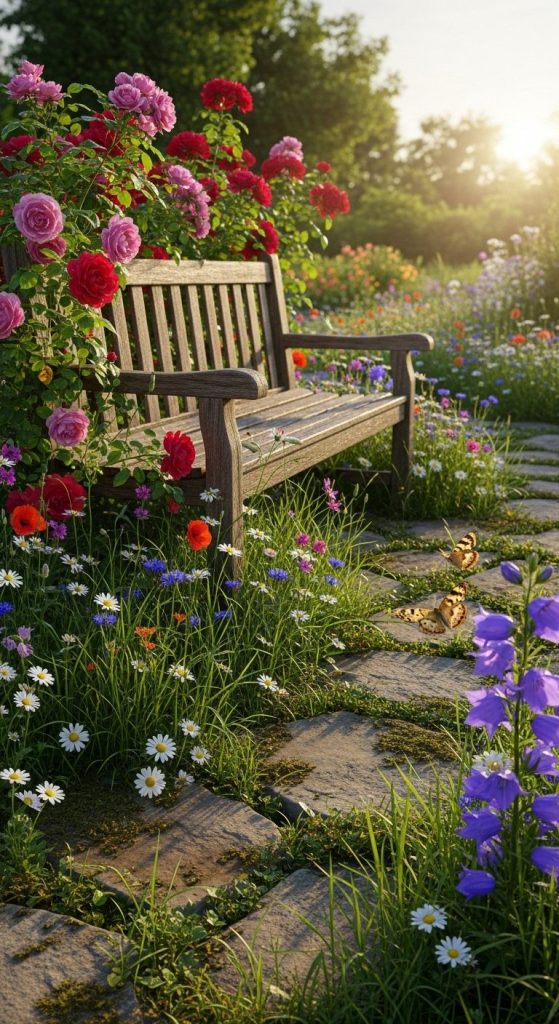 A wildflower patch adds movement, color, and authenticity — nature at its best.