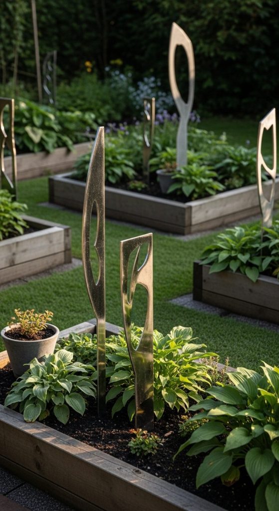 Takeaway: Metal art stakes transform a garden from “pretty” to “curated gallery,” offering longevity and elegance.
