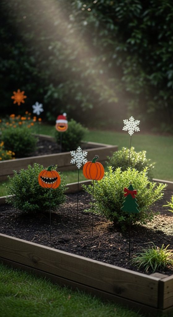 Takeaway: Seasonal stakes make your garden festive and ever-changing — perfect for adding surprise and delight.