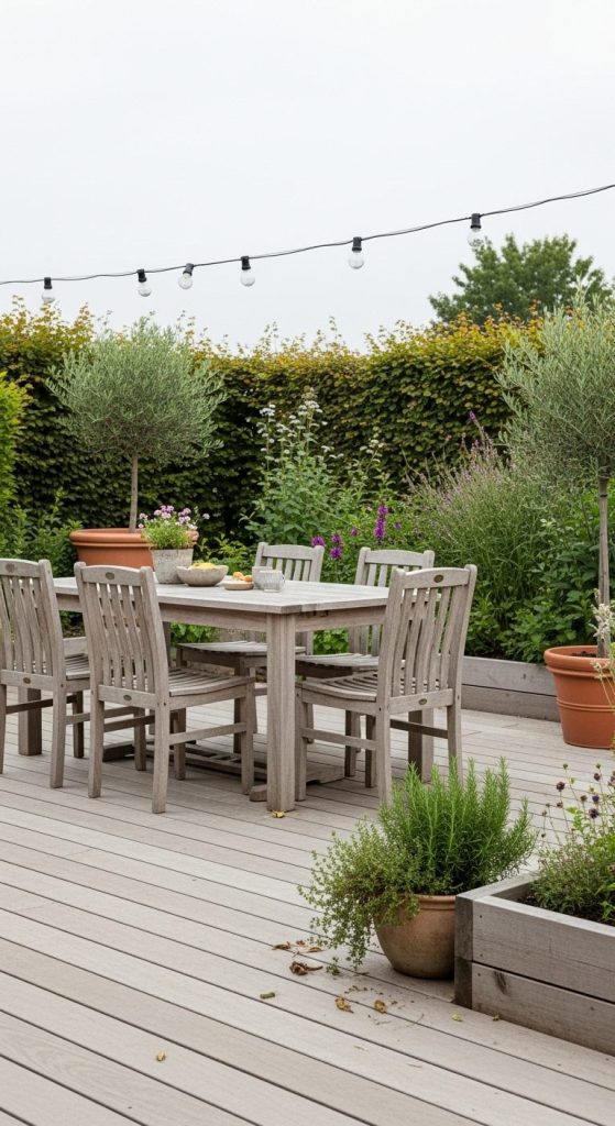 Some families add string lights, which instantly create that warm, evening glow. Others place their dining area near herbs, so grabbing fresh mint or rosemary becomes part of the routine.