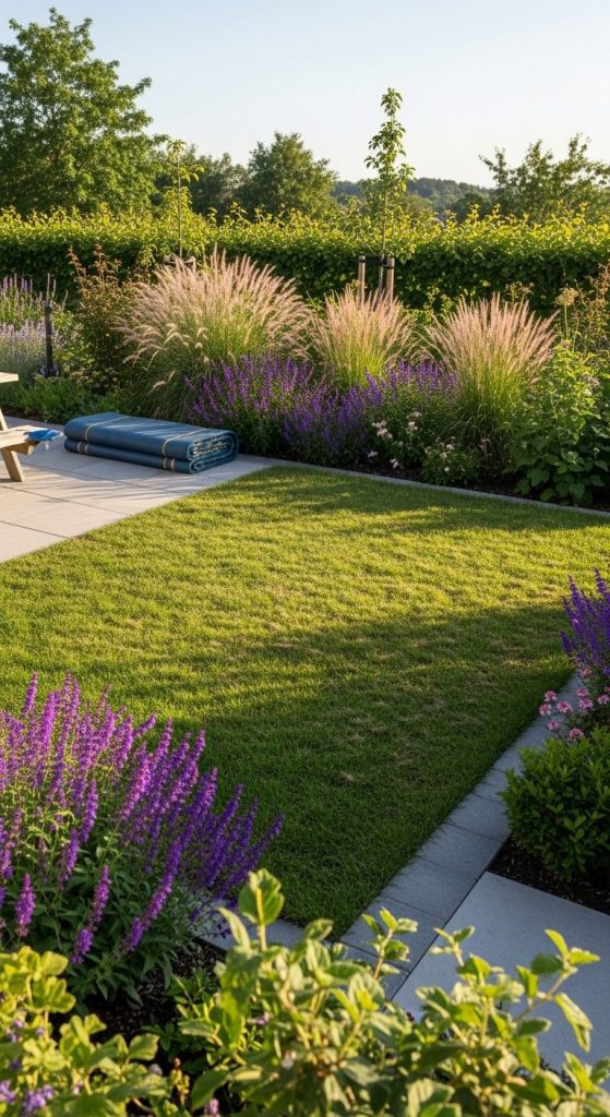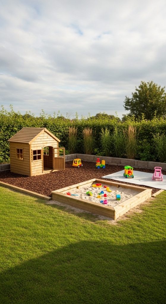 A defined play area keeps the yard functional while still letting kids enjoy it freely.