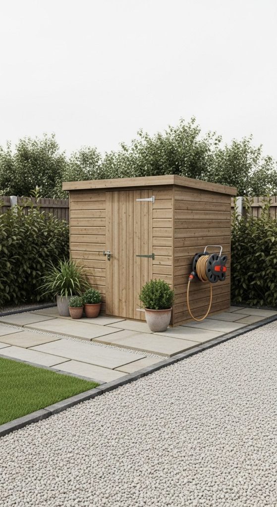 Every family garden needs storage, otherwise tools, toys, and cushions take over. A compact shed solves that instantly. Modern models are surprisingly stylish and don’t dominate the space the way older sheds used to.