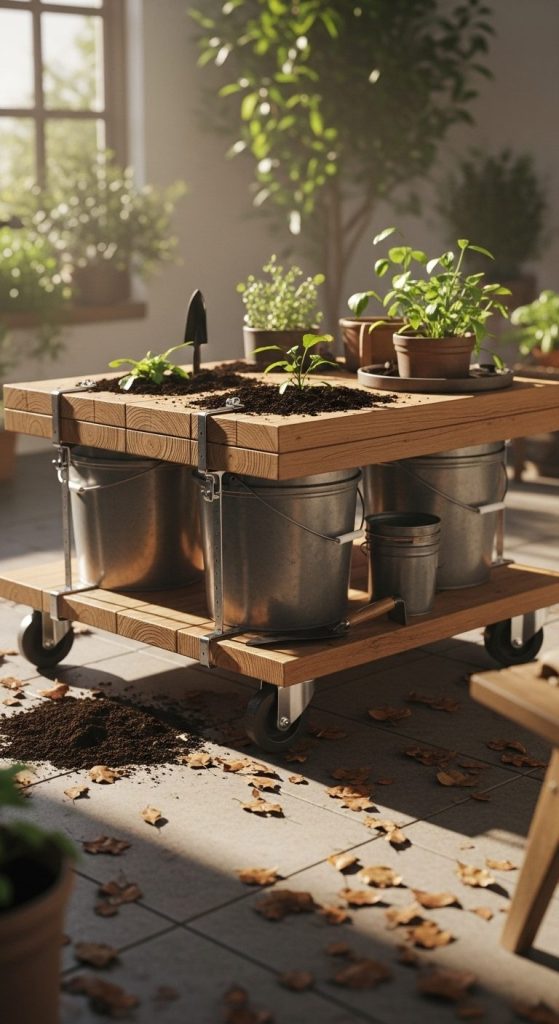 Imagine rolling your garden to chase the sun or move indoors during a storm. Adding wheels to a bucket stand makes your plants fully mobile.