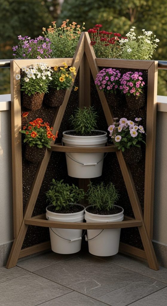 Make the most of awkward corners by designing a triangular or L-shaped stand that fits snugly. Perfect for balconies and patios.