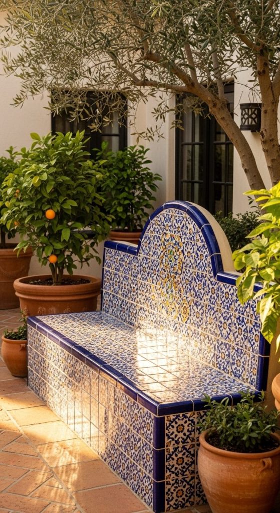 14. Mosaic-Tiled Benches — Mediterranean Splendor