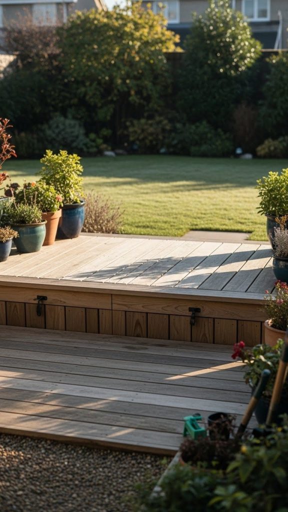 If you’re always running out of storage (and who isn’t?), a raised deck earns major points. The space underneath becomes the perfect home for cushions, outdoor toys, gardening tools, or spare pots.