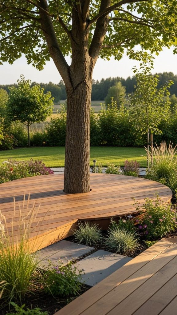 Instead of removing a tree to build a deck, this idea embraces it. The tree becomes the feature. The deck wraps around the trunk, offering shade and a sense of natural connection.
