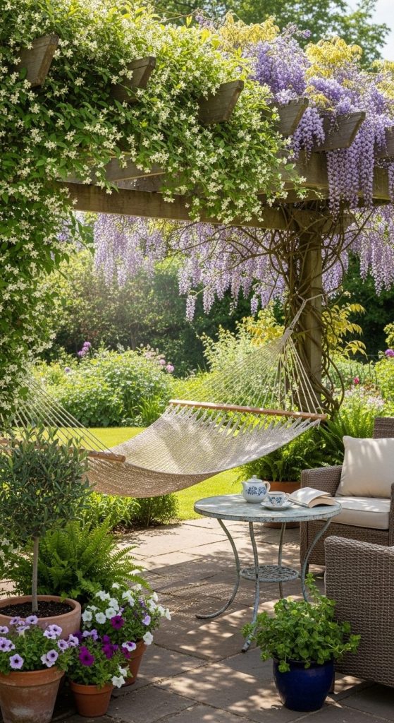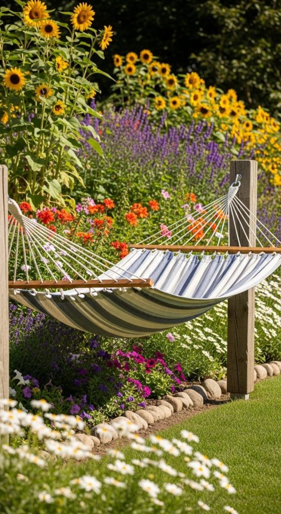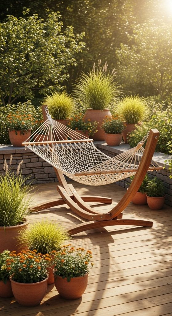 A hammock chair brings a touch of playfulness to any garden corner — it’s functional, cozy, and irresistibly fun.