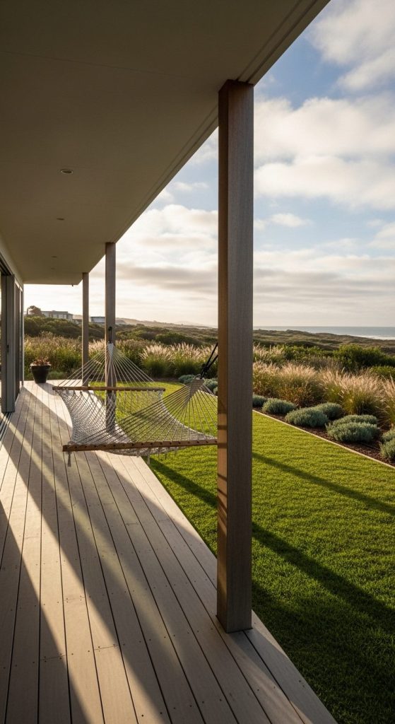 This setup blends relaxation with design — your deck becomes an instant retreat with minimal visual clutter.