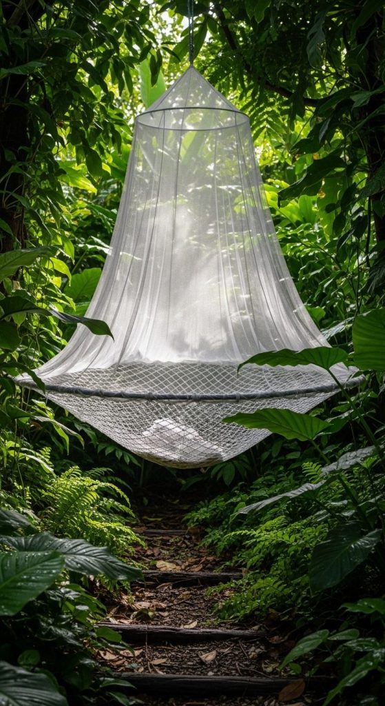 A mosquito-net hammock lets you enjoy nature — not battle it. Think of it as a cozy outdoor cocoon.