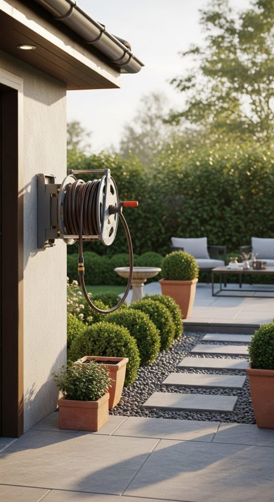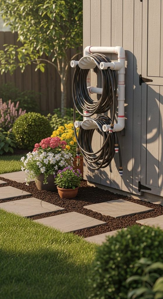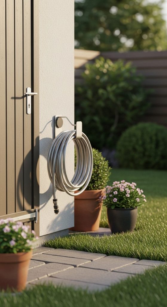 A magnetic hose hanger is surprisingly handy for lightweight hoses. I installed one next to my shed door—it’s sleek, minimal, and almost invisible when not in use.