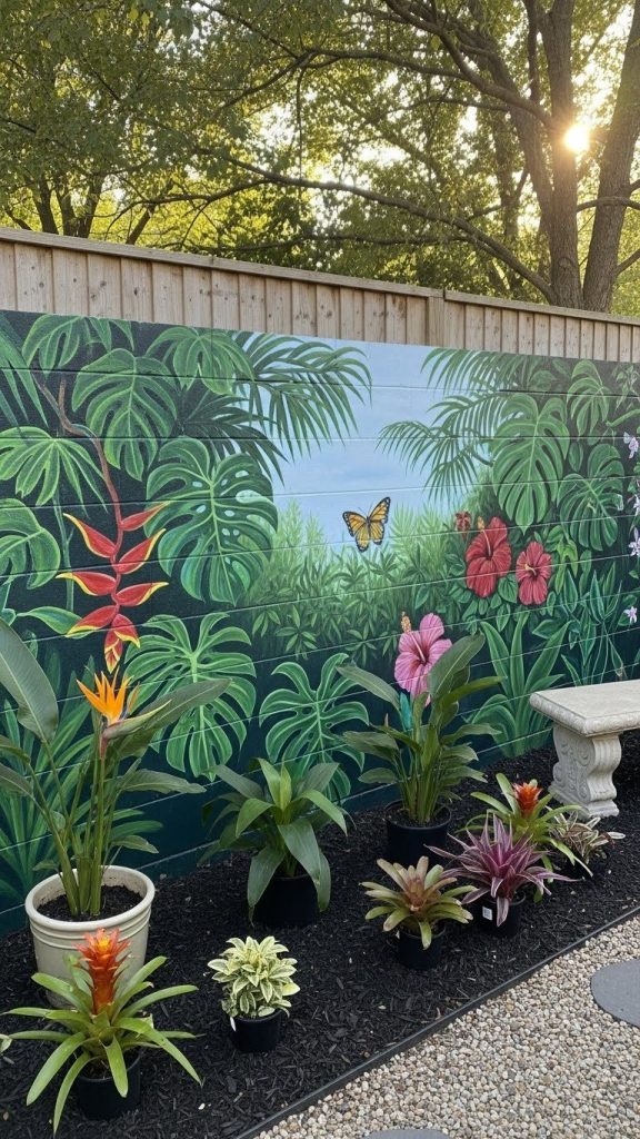 Mini takeaway: Tropical murals make your garden feel like a private getaway—perfect for cozy weekends outdoors.
