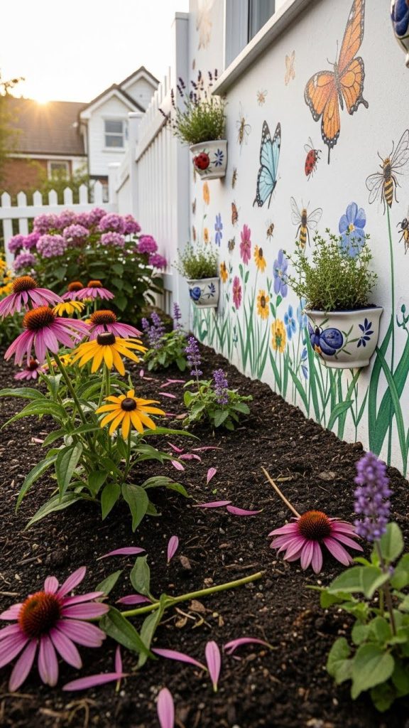 Mini takeaway: A butterfly-themed wall brings energy and lightness, making your garden feel like it’s buzzing with life.