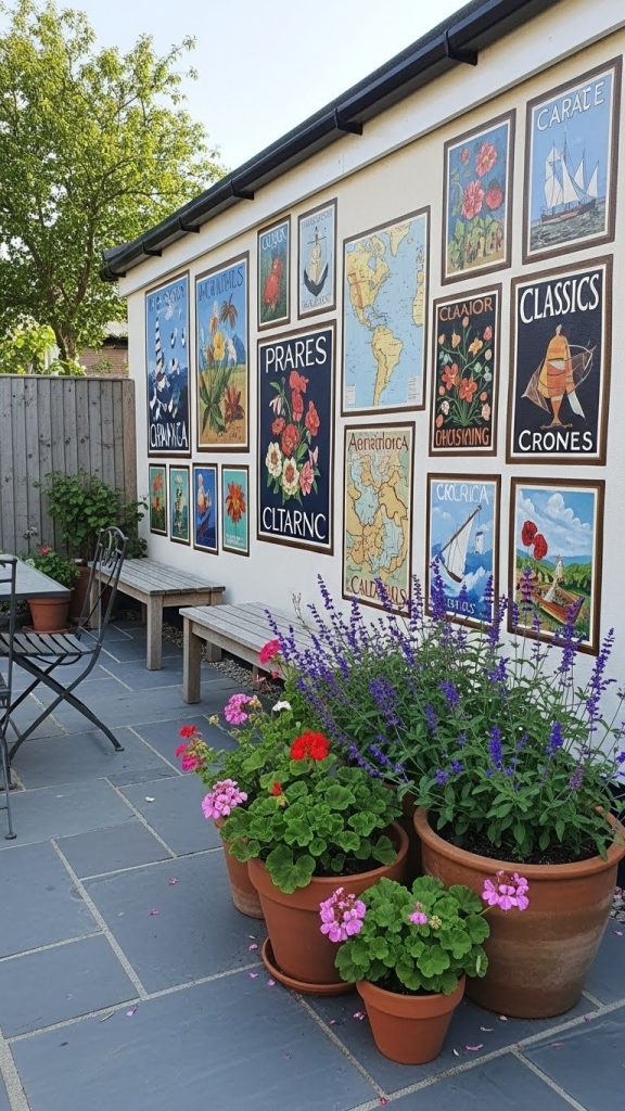 Recreate old botanical, travel, or nautical posters on your wall. It adds nostalgia and makes your garden feel curated.