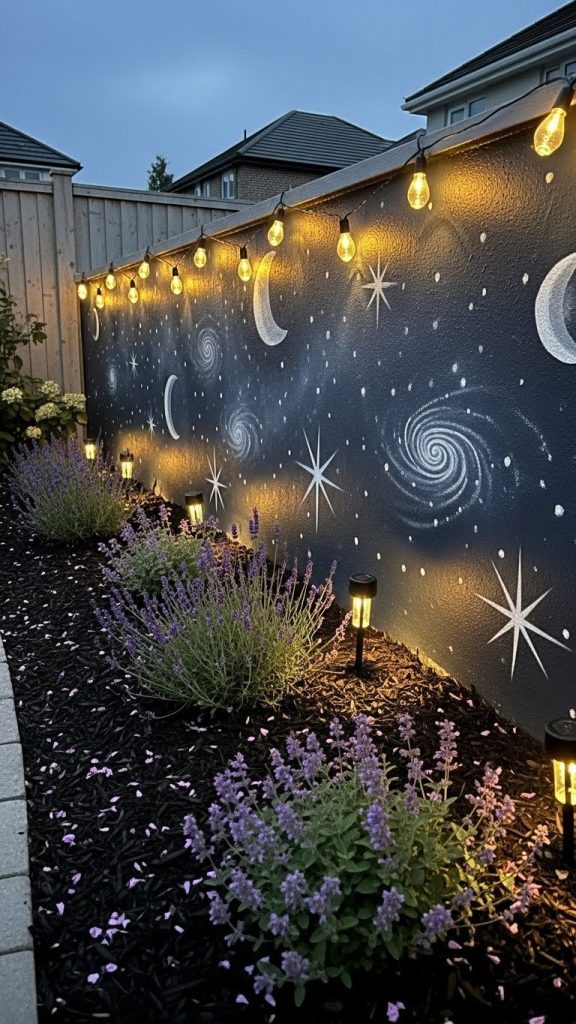 Mini takeaway: Night sky murals make your garden feel infinite and whimsical after sunset—perfect for stargazers.