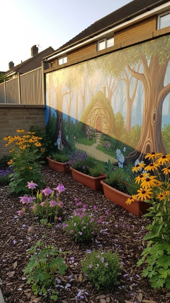 Mini takeaway: Storybook murals turn your garden into a narrative space, where every visit feels like a small adventure.