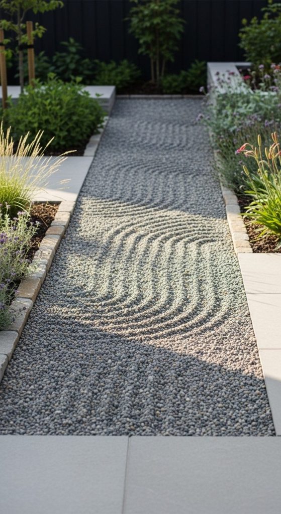 If you love low-effort, high-impact design, raked pathways give your yard a clean, almost Japanese-garden feel with almost no cost.