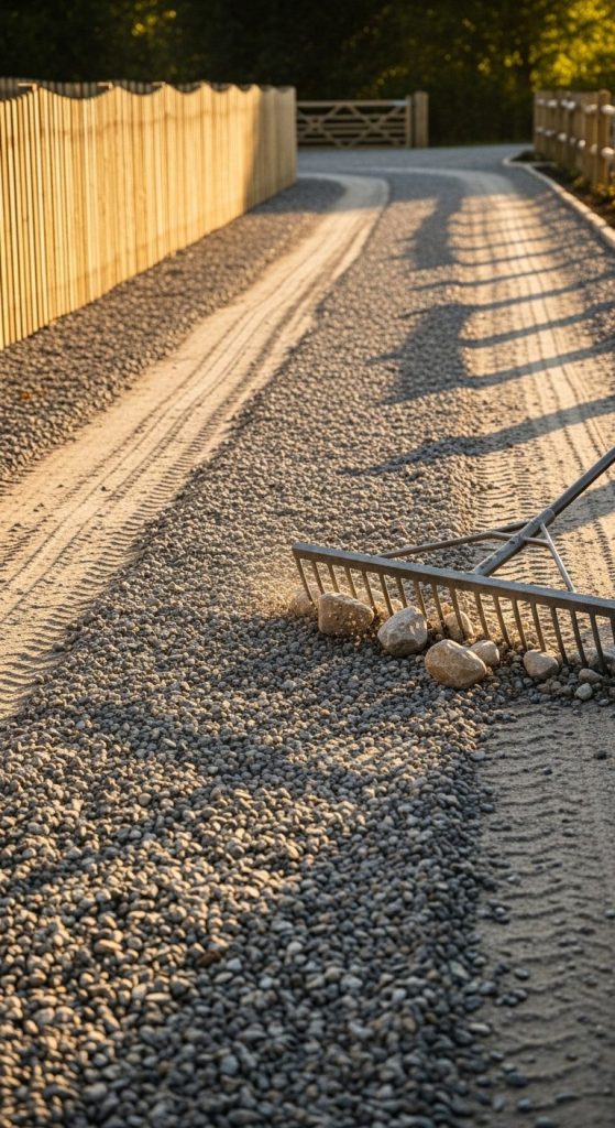 A few minutes of raking every week keeps gravel driveways tidy, safe, and surprisingly elegant.