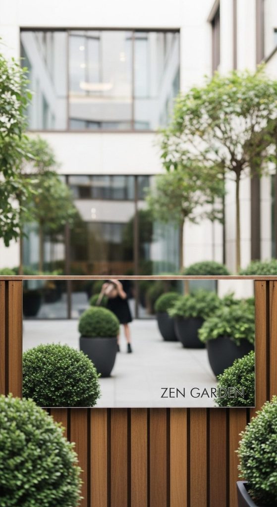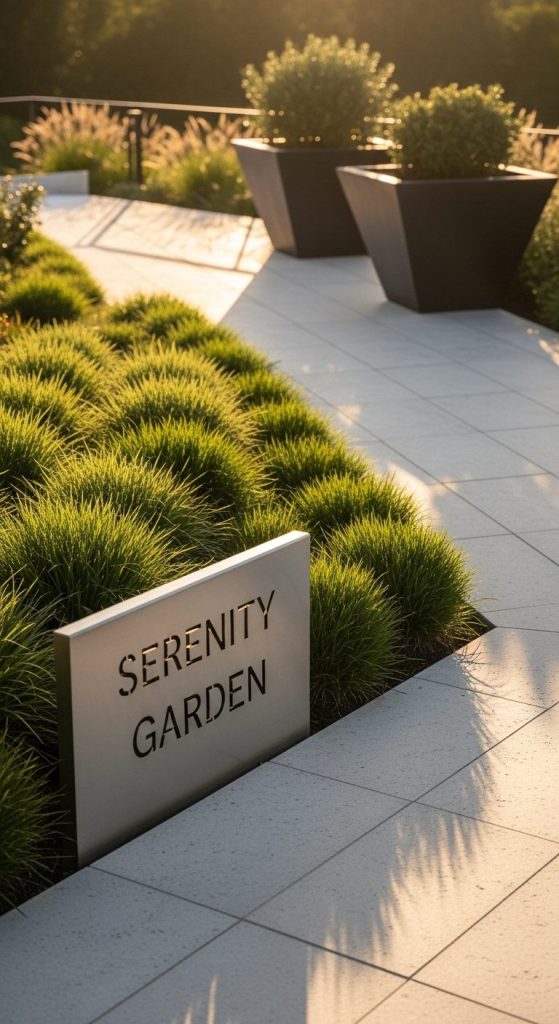 Reflective signs aren’t just decorative—they visually expand small gardens. A mirrored plaque with your garden name or a quote can make tight spaces feel larger while adding elegance.