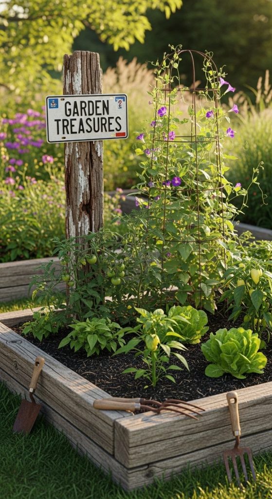 For quirky, eclectic gardens, vintage license plate signs are a fantastic option. Paint them with plant names, humorous messages, or seasonal greetings. They’re a hit for DIY and recycled-material lovers.