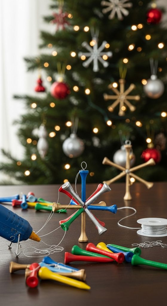 Golf tees + Christmas = underrated combo. They look surprisingly chic when painted metallic gold.