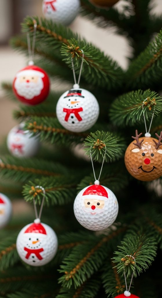 Transform your golf balls into little characters—Santa, snowmen, reindeer, or even Grinch faces. Acrylic paint works best, and sealing spray keeps them durable.