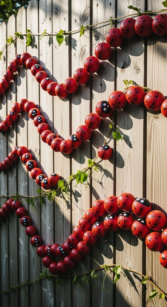 Mount golf ball ladybugs onto fences or walls to enliven vertical spaces.