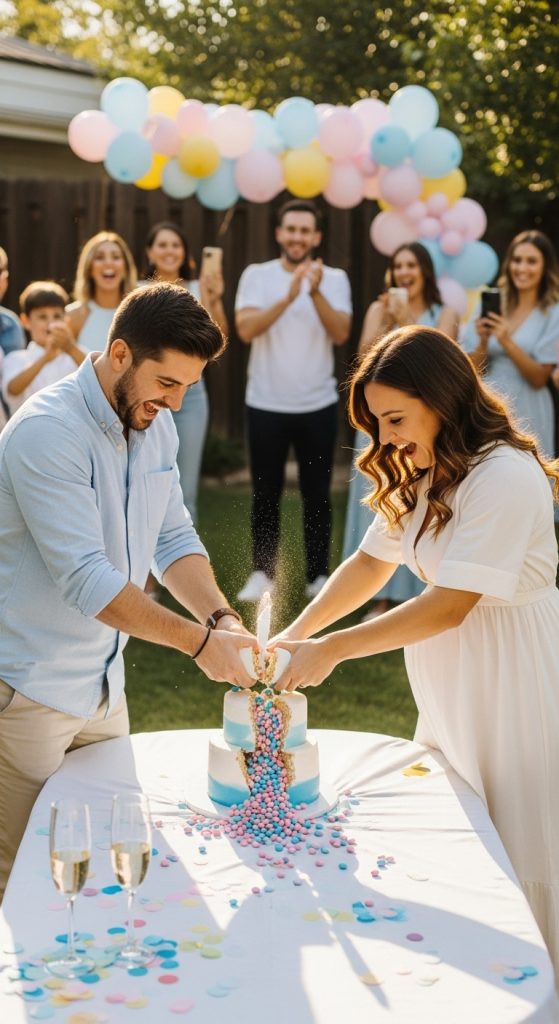 Yes, you can use a golf ball smash cake for gender reveals. The inside is pink or blue cake/candy. Parents-to-be smash it open to share the big news.
