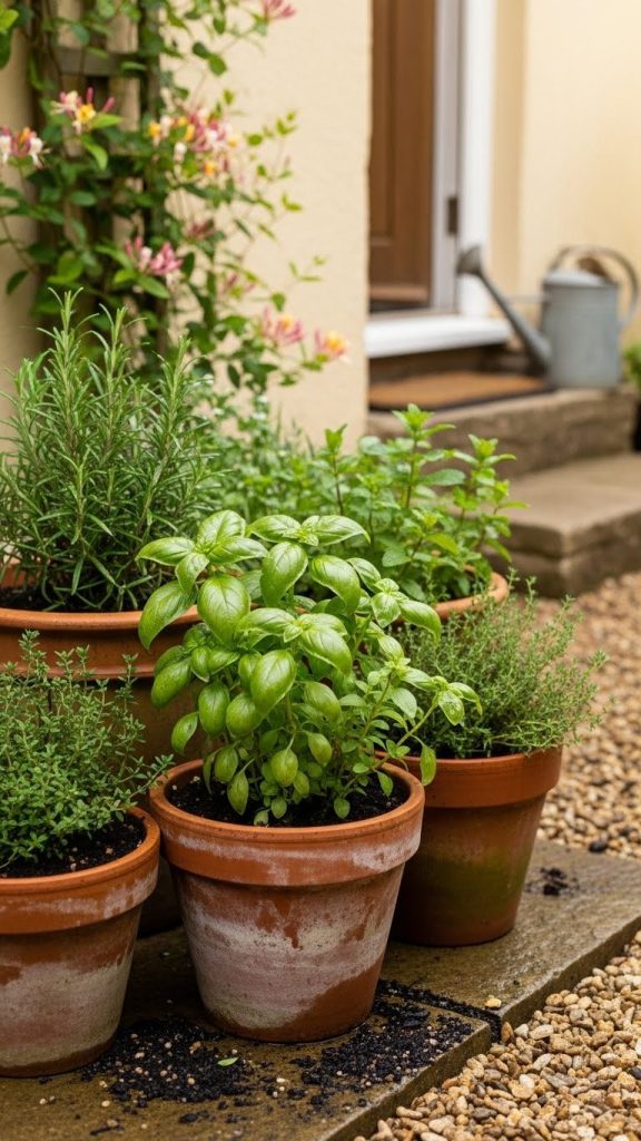 One thing many grandmas have in common? They love fresh herbs. Clay pots filled with mint, rosemary, thyme, or basil add both beauty and utility. The rustic terracotta look fits perfectly with the nostalgic style.