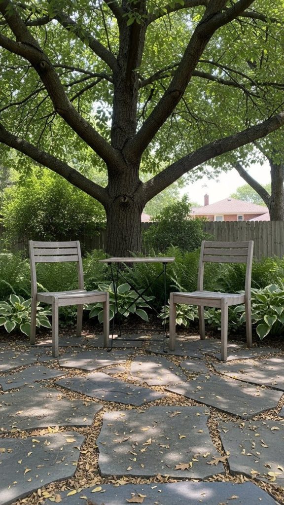 If you have a tree—any tree—use it. Grandmas instinctively know shade equals comfort. All you need is a small setup: two chairs, a tiny table, maybe a patch of grass or pavers underneath.