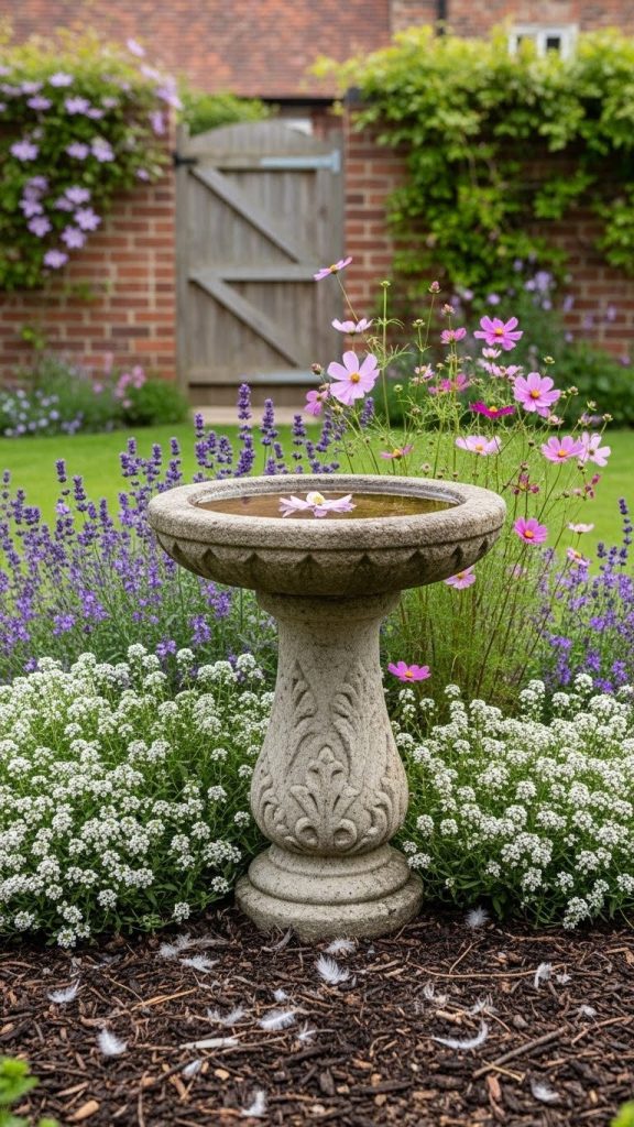 Mini takeaway: A bird bath adds a gentle liveliness that softens the whole garden.