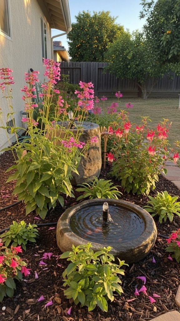 A shallow fountain or dripper provides essential water and a place to bathe. I installed a small dripper feature, and it quickly became a favorite stop for hummingbirds during hot afternoons.