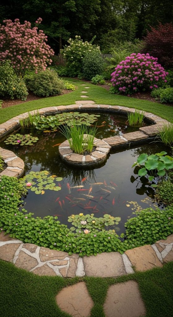 Your pond’s design defines the garden’s flow. Round, oval, or irregular shapes all create different vibes.