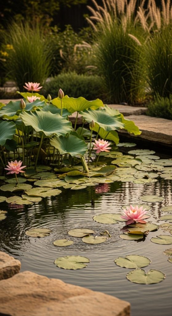 Mini takeaway: Let your lotus dominate the pond — its presence defines the garden’s mood and serenity.