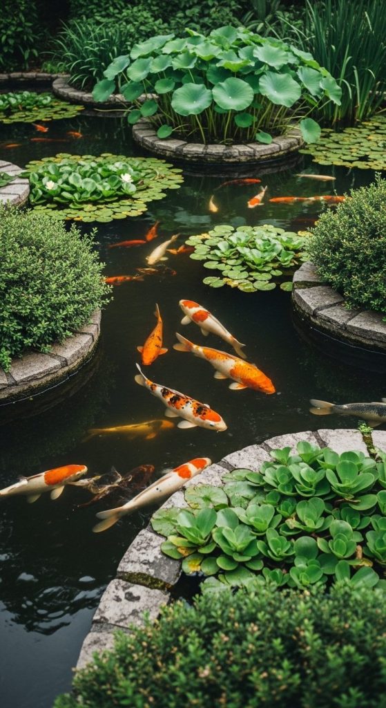 - Color accents: Bright koi create a stunning contrast against green pads.