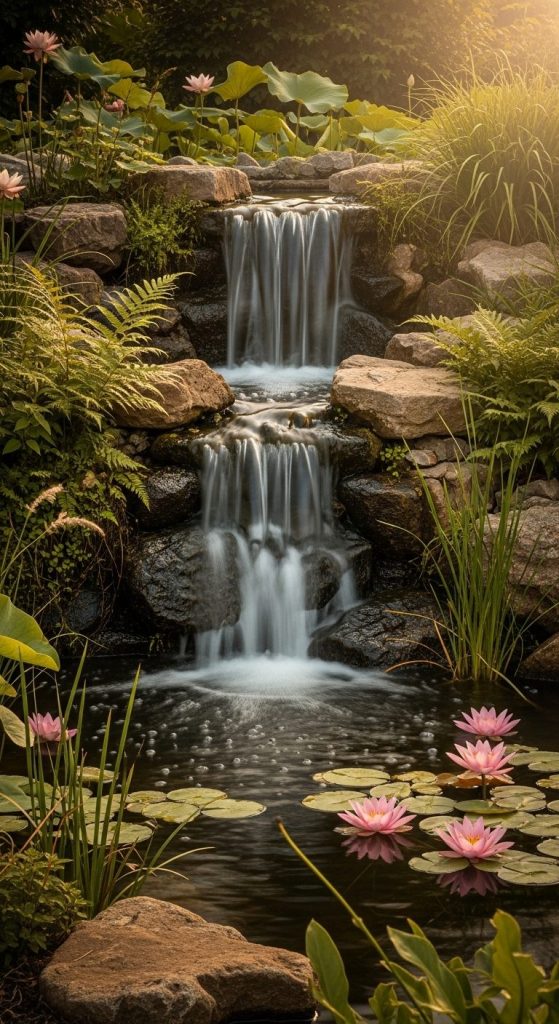 Mini takeaway: Water movement turns a simple pond into a living, breathing centerpiece.