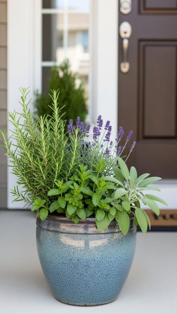 This one surprised me the first time I saw it. A neighbor had planted peppermint, rosemary, and lavender in a big pot right beside her front door. It looked beautiful, yes, but the scent? Unreal. Every time someone opened the door, they stepped into a soft herbal aroma.