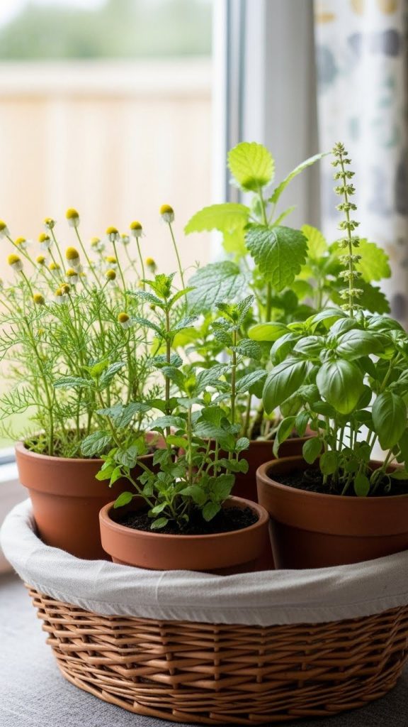 Basket gardens look warm and inviting. You can place one near a window or on a covered patio. I love how easy it feels to pick a few leaves and brew something fresh. There’s a personal satisfaction in making tea from your own medicinal herb garden.