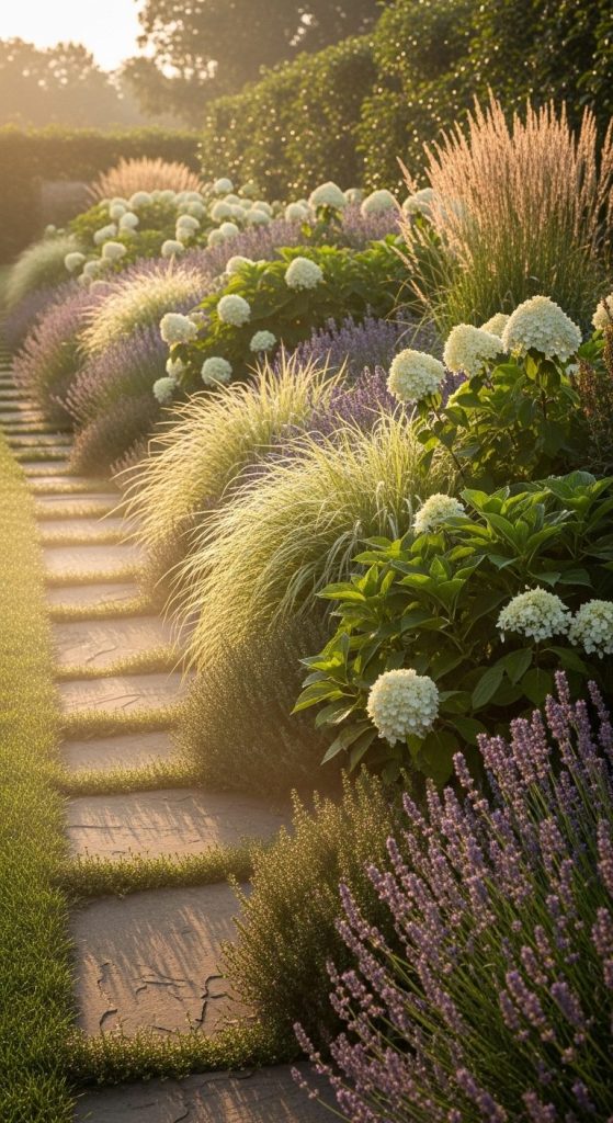 Takeaway: Think in layers (groundcover, mid-height, taller shrubs) and repeat key plants to make the design feel cohesive.